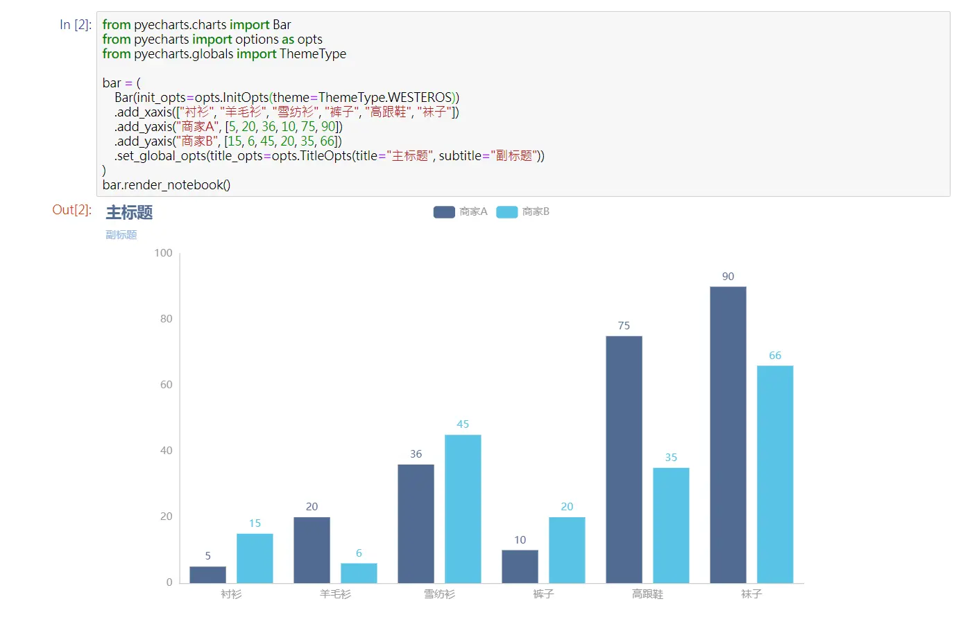 .add_xaxis(["衬衫", "毛衣", "领带", "裤子", "风衣", "高跟鞋", "袜子"])