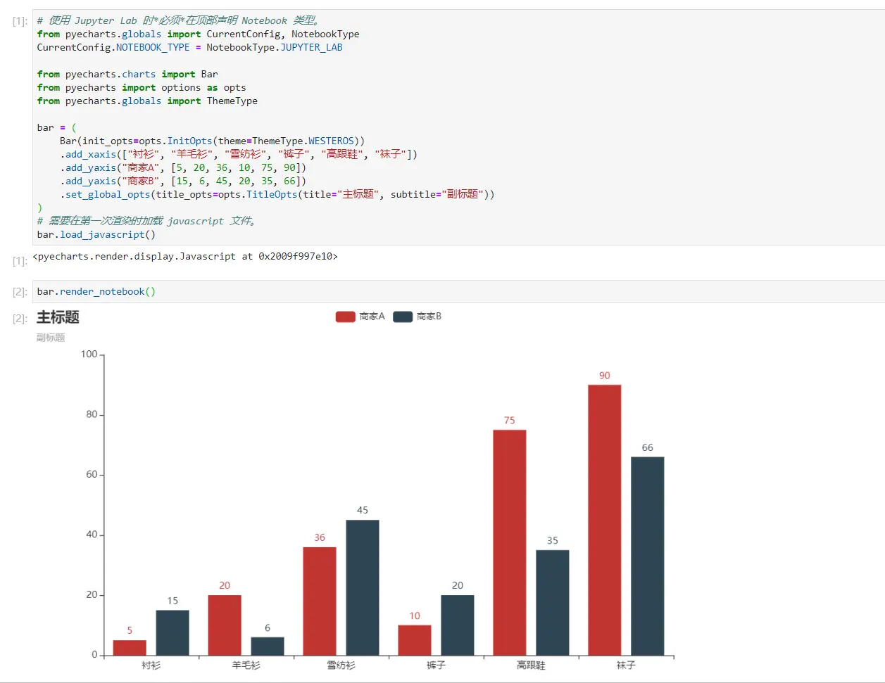 对 JupyterLab 的支持一直是很多开发者关心的功能,毕竟 JupyterLab 号称是下一代的 Notebook。pyecharts v1 开始支持在 JupyterLab 中渲染图表啦!