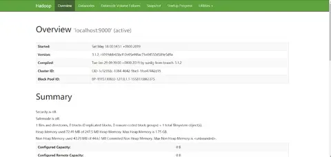访问Hadoop上的浏览器 访问Hadoop的默认端口号为50070。使用以下网址,以获取Hadoop服务在浏览器中。