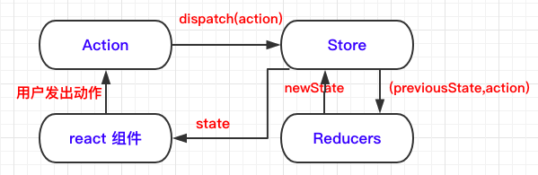 - 组件改变state的唯一方法是通过调用store的dispatch方法,触发一个action,这个action被对应的reducer处理,于是state完成更新