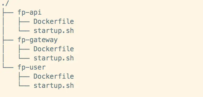 fp-gateway、fp-api、fp-user是我们基于SpringCloud构建的应用,并将其注册给nacos。nacos我们直接使用官方的镜像即可,剩下这三个应用需编写镜像。