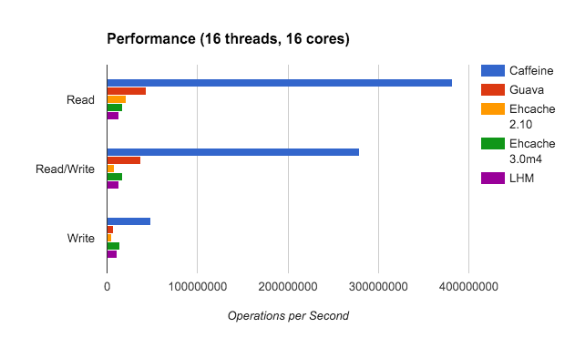 由图可以看出,Caffeine不论读还是写的效率都远高于其他缓存。
