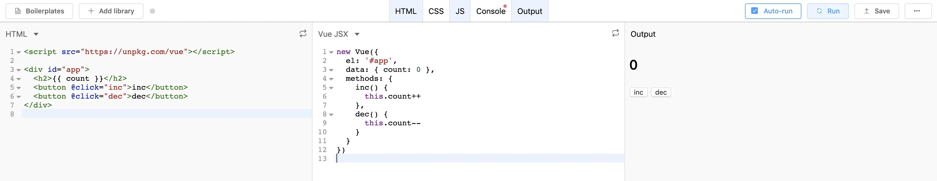 - codepan.net 在线代码编辑器。 @egoist 开源的,不需要翻墙,非常轻量,便捷。类似于