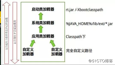 1.启动类加载器:负责加载JRE的核心类库,如jre目标下的rt.jar,charsets.jar等. 2.扩展类加载器:负责加载JRE扩展目录ext中JAR类包 3.系统类加载器:负责加载ClassPath路径下的类包 4.用户自定义加载器:负责加载用户自定义路径下的类包
