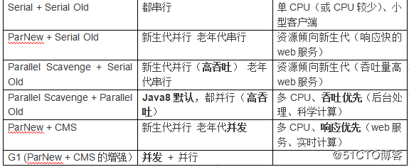 按系统线程可分为:串行收集算法,并行收集算法,并发收集算法 1.串行收集:使用单线程处理垃圾回收工作,实现容易,效率较高。不足之处:1.无法发挥多处理器的优势 2.需要暂停用户线程 2.并行收集:使用多线程处理垃圾回收工作,速度快,效率高。理论上CPU数目越多,越能体现出并行收集器的优势。不足之处:需要暂停用户线程 3.并发收集:垃圾线程与用户线程同时工作。系统在垃圾回收时不需要暂停用户线程