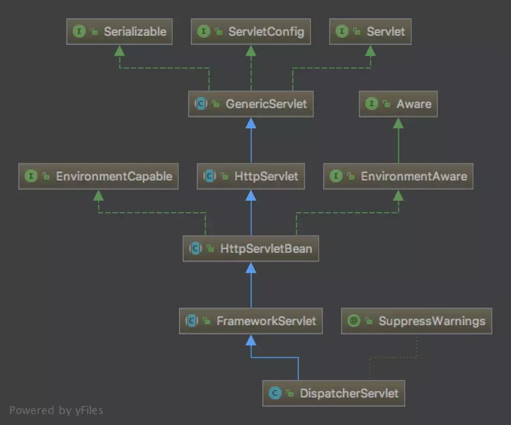 DispatcherServlet的类继承关系如下:
