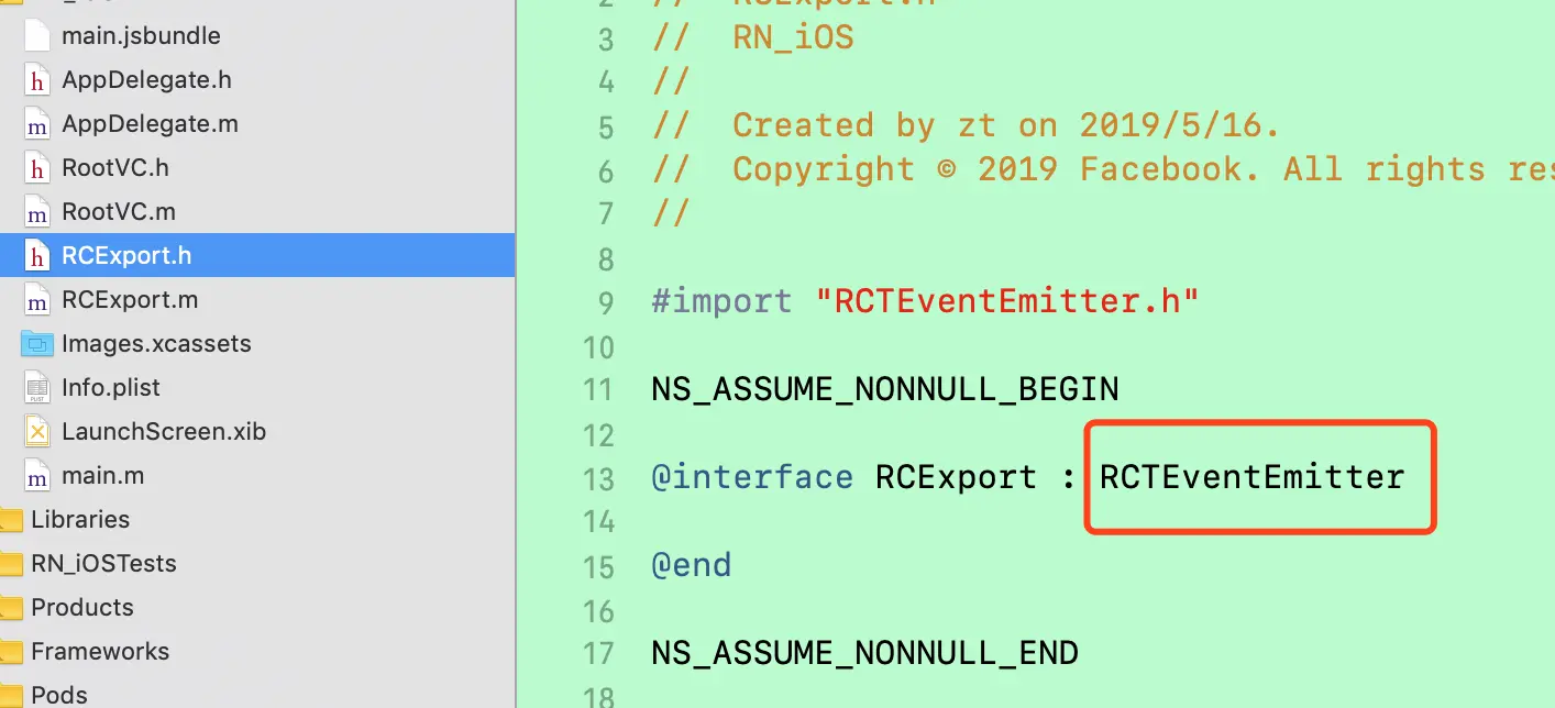 在iOS里创建继承RCTEventEmitter的类