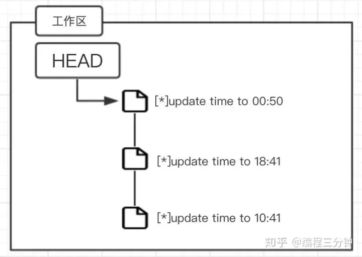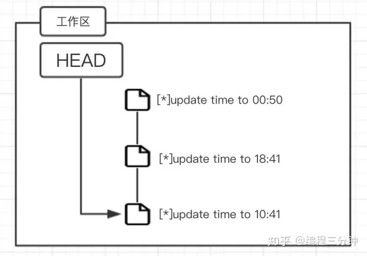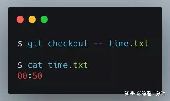 git checkout [<options>] [<branch>] -- <file>...我们还是用time.txt这个文件来做试验,先搞三个版本出来,在这里我已经搞好了,来看看: