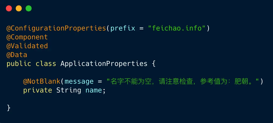 肥朝小声逼逼:提高代码稳壮性,肥朝认为最好的办法就是提前预防。实际项目中,我们在配置文件配置了各种参数。但是大家也知道,不同环境的配置参数,是会不一样的,难免会因为人为疏忽,导致某个环境的配置文件,少了一些关键参数,光靠肉眼来检查,必然是一个低效而又不可靠的方式。如果你不用该方式校验,很容易在某个特殊的场景下,才触发出坑。但是你采用这种方式,做了大量的启动时校验,一旦参数不合法,项目启动都启动不了,做到了防范于未然!