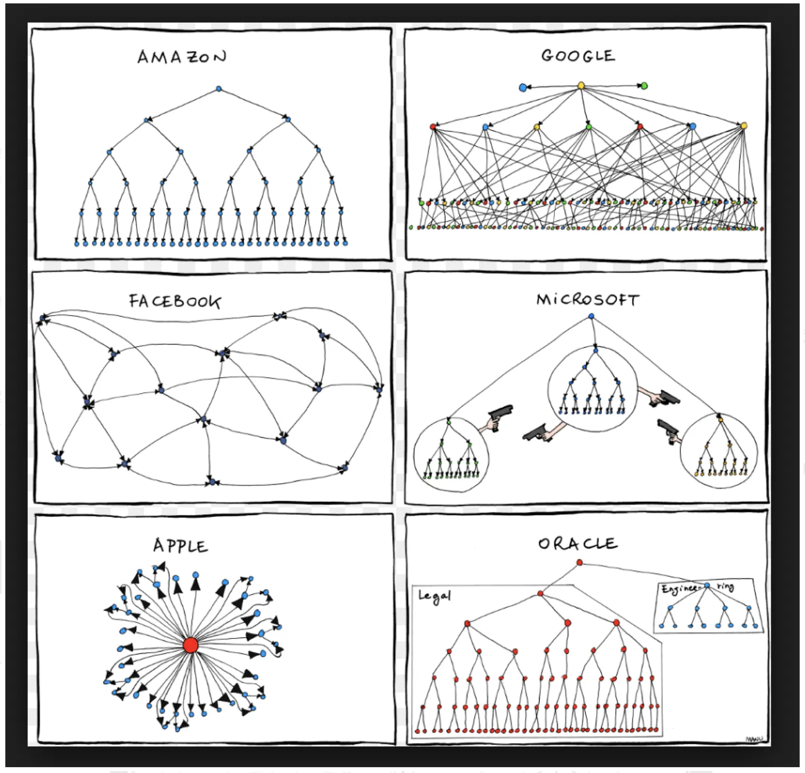 传统意义上的大公司,的确需要一个强大的组织结构去管理,比如网上盛传的各个国际化大公司的组织结构图。