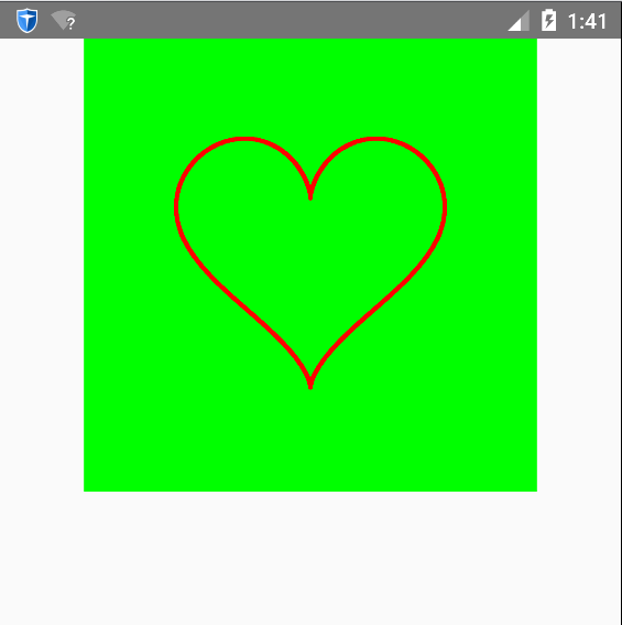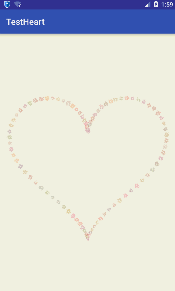 @Override protected void onDraw(Canvas canvas) { float angle = 10; while (angle < 180) { Point p = getHeartPoint(angle); canvas.drawPoint(p.x, p.y, paint); angle = angle + 0.02f; } }
