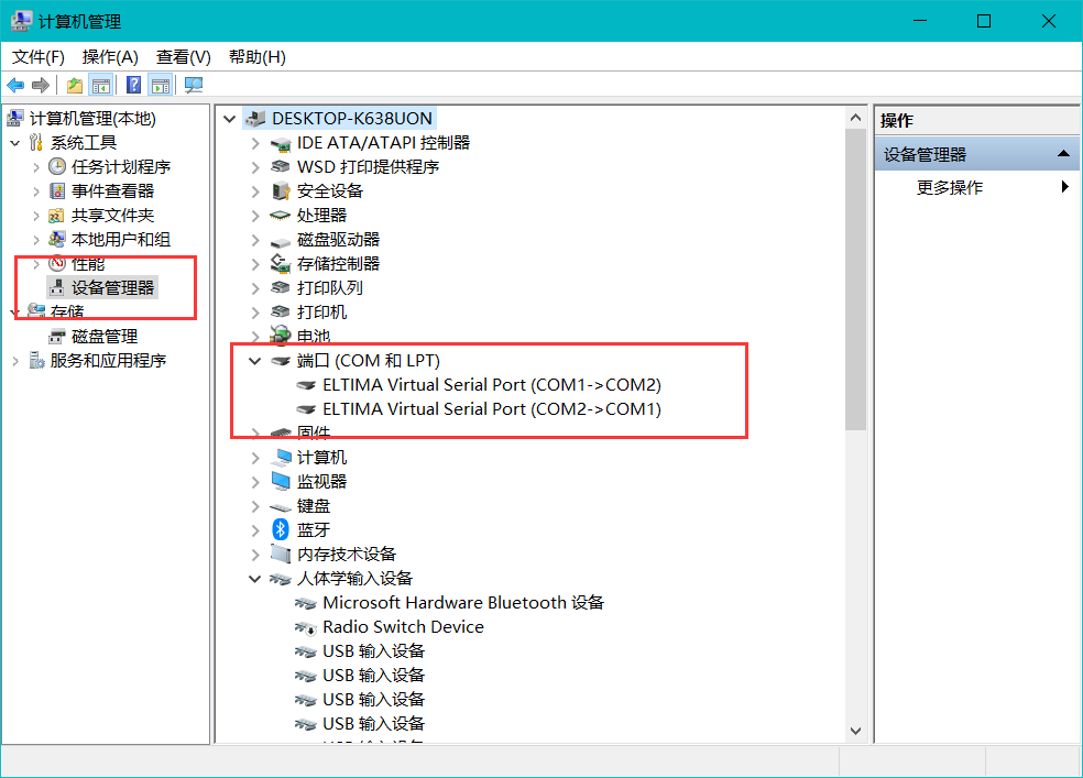 右键此电脑->管理 查看是否有虚拟的端口