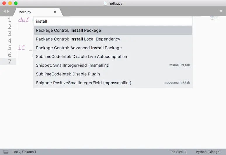 import urllib.request,os;pf='Package Control.sublime-package';ipp=sublime.installed_packages_path();urllib.request.install_opener(urllib.request.build_opener(urllib.request.ProxyHandler()));open(os.path.join(ipp,pf),'wb').write(urllib.request.urlopen('http://sublime.wbond.net/'+pf.replace(' ','%20')).read())- Sublime 2