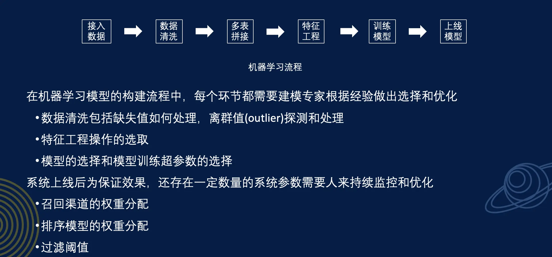 刚才简单介绍了我们能够利用AI、机器学习解决的一些点。在这些点里面,其实每一个要解决的点,都可能需要一个或多个模型。那么该如何构建模型呢?
