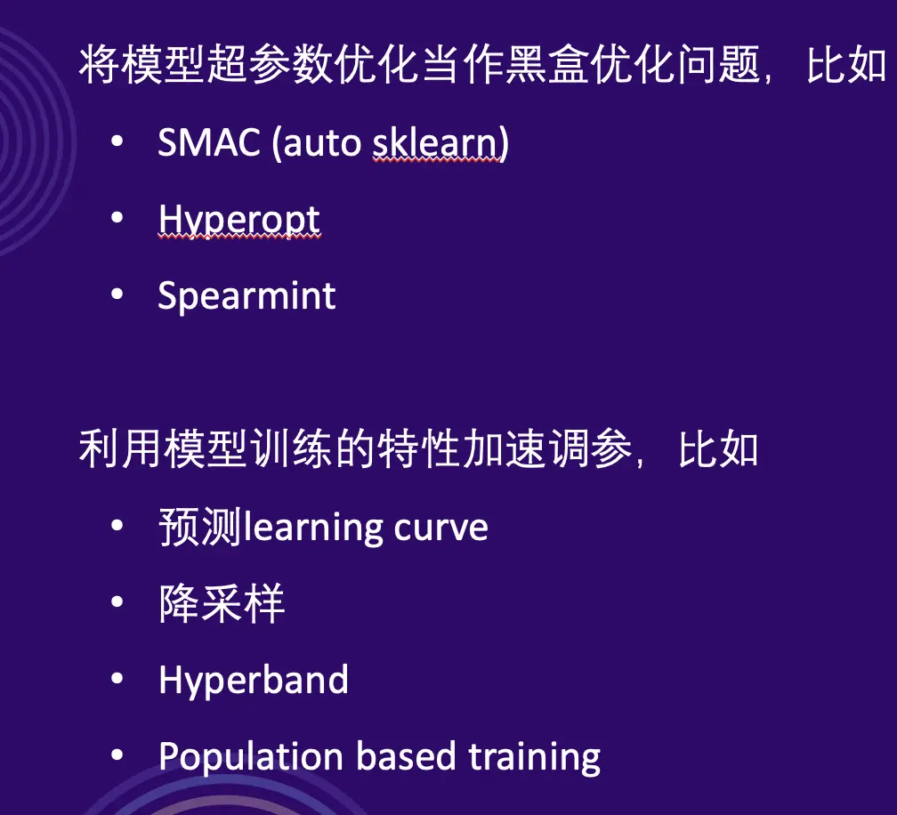 我们通过研发自动调参算法来使这个过程自动化,在无人干预的情况下我们在多个数据集上发现最终模型效果能和专家相当甚至更好。 方法上我们一方面把它当做一个黑盒优化问题,通过贝叶斯优化来决策超参数的选择,另一方面我们也顾及到模型训练本身不是一个黑盒,通过利用训练过程中产生的数据来加速超参数优化。