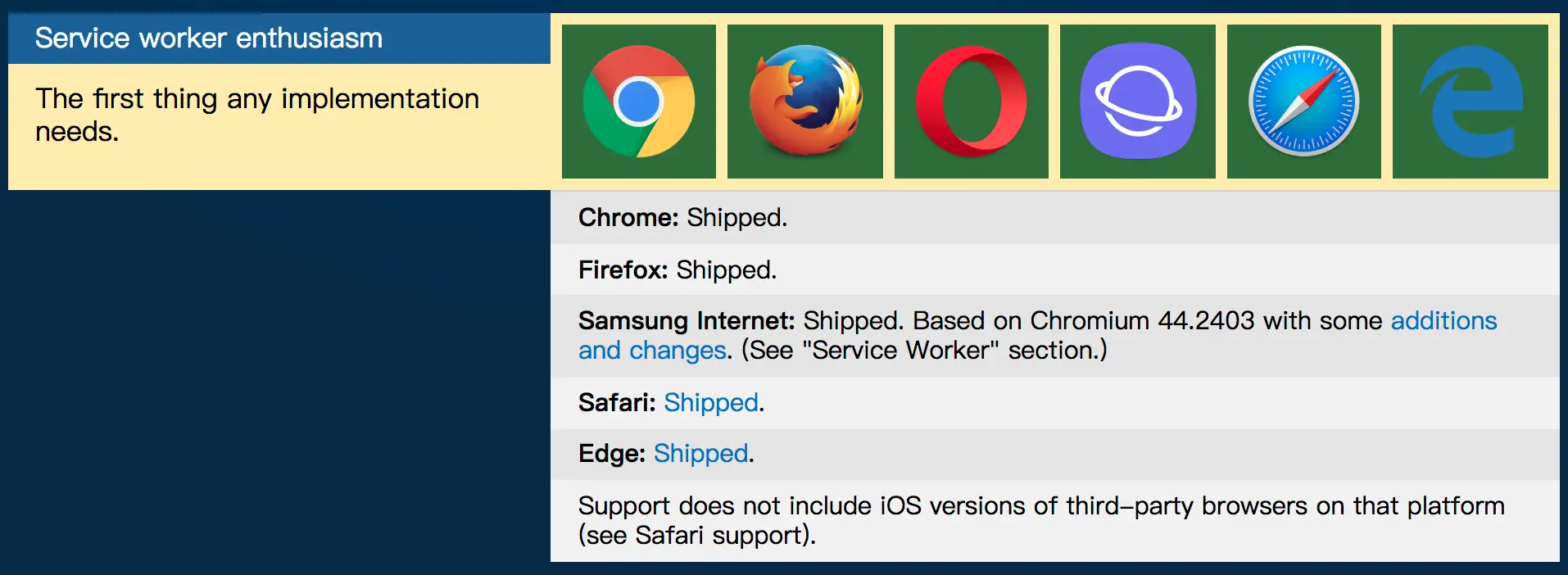 Service Worker 以全数「登船」。信息来源于 jakearchibald.github.io/isservicewo…