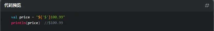 如果你需要在原始字符串中表示字面值($)字符(它不支持反斜杠转义),可以用下列语法: