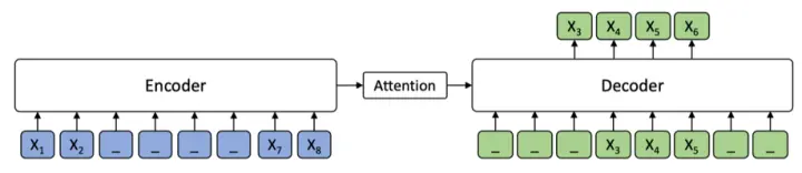具体训练时,MASS 借鉴了 masked LM 的训练方式,把一句话里的部分词在 encoder 里 mask 掉,只不过需要在 decoder 里预测出来。 如下所示
