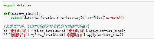 在看回答创建时间分布前,需要先把知乎默认的时间戳格式转换成我们习惯的时间格式: