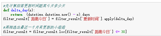 2、 数据最重要的特性之一就是时效性,别看回答数量这么多,真正抓得住的幸福才是属于自己的幸福,如果一个答主最近一次更新答案的时间超过了一个月,那只有两种可能,要么是她已经找到了,要么她已经对这个方式失去了兴趣。所以,加上时间条件,筛选出最近30天还活跃的小姐姐们。