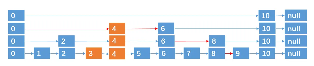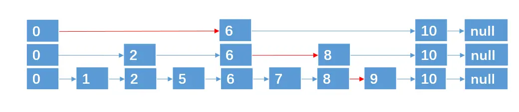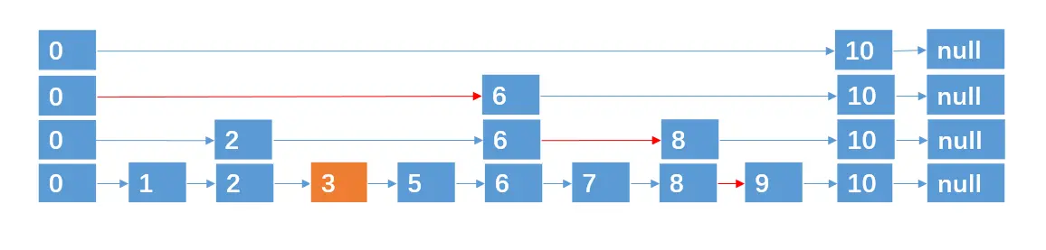 由于元素的有序的,我们是可以通过增加一些路径来加快查找速度的。例如