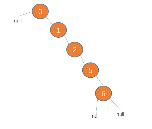 不过,二叉查找树是有可能出现一种极端的情况的,就是如果插入的数据刚好一直有序,那么所有节点会偏向某一边。例如