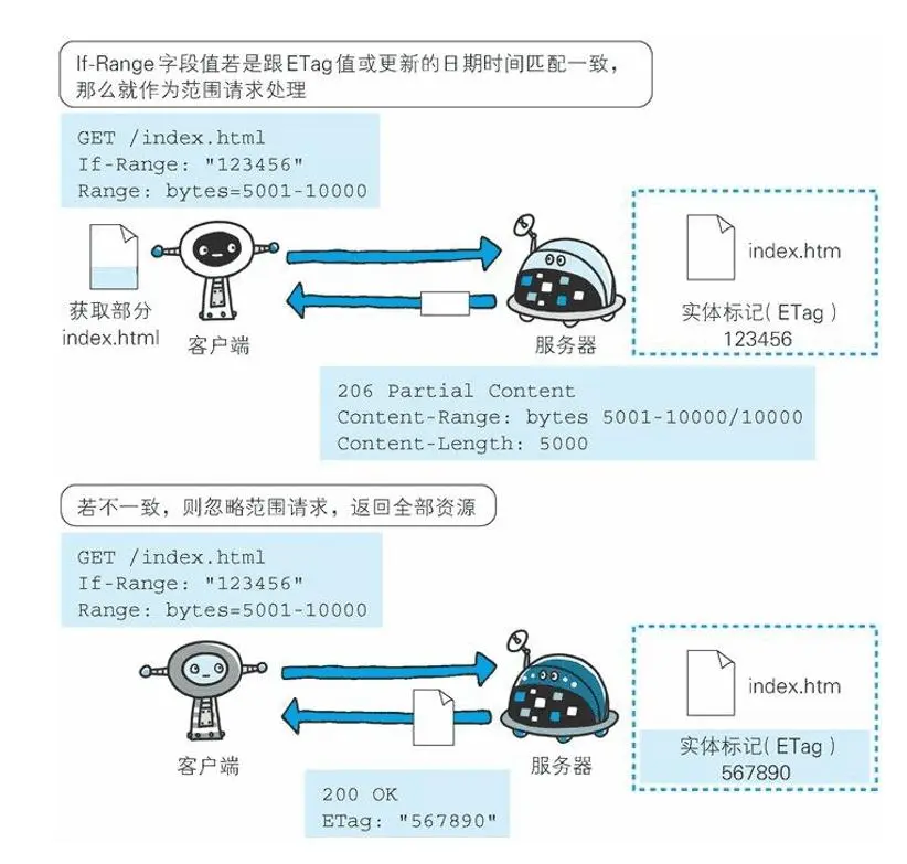 针对范围请求,返回响应时使用的首部字段Content-Range,能告诉客户端作为响应返回的实体的哪个部分 符合范围请求。字段值以字节为单位,表示当前发送部分及整个实体大小。