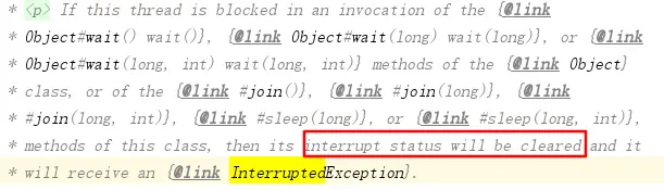 线程被阻塞时, 调用interrupt(), 阻塞调用被InterruptedException中断, 且线程中断状态被重置(false), 因此, 此时检测中断状态isInterrupted()也就没有意义