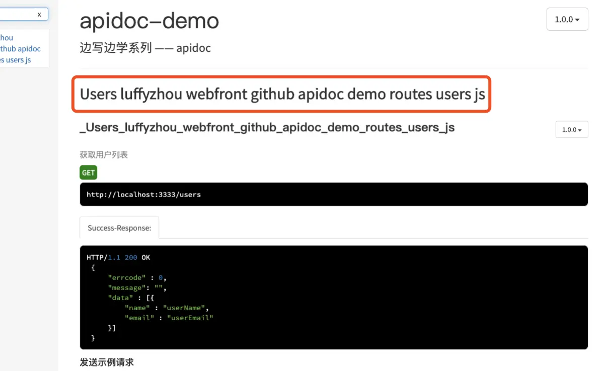 更加详细的使用说明,可以见我的系列文章:边写边学系列(一) —— 使用apidoc,搞定自动化文档