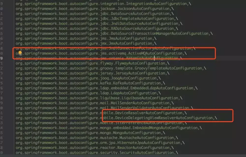 我们可以发现帮我们配置了很多类的全路径,比如你想整合activemq,或者说Servlet