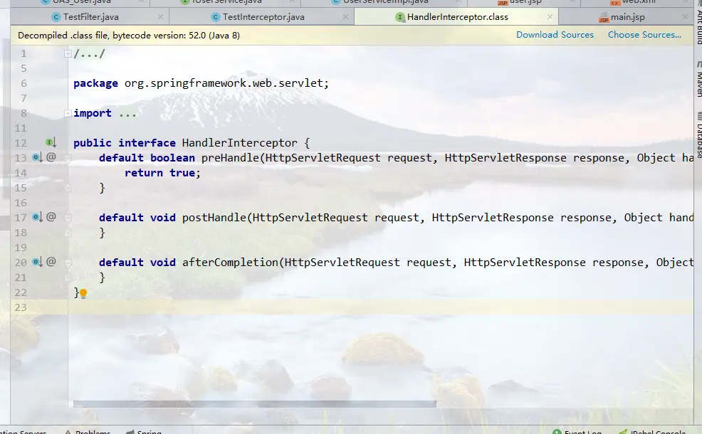原因:这是Java8的新特性——default方法/defender方法。HandlerInterceptorf接口的方法全部用default来修饰。