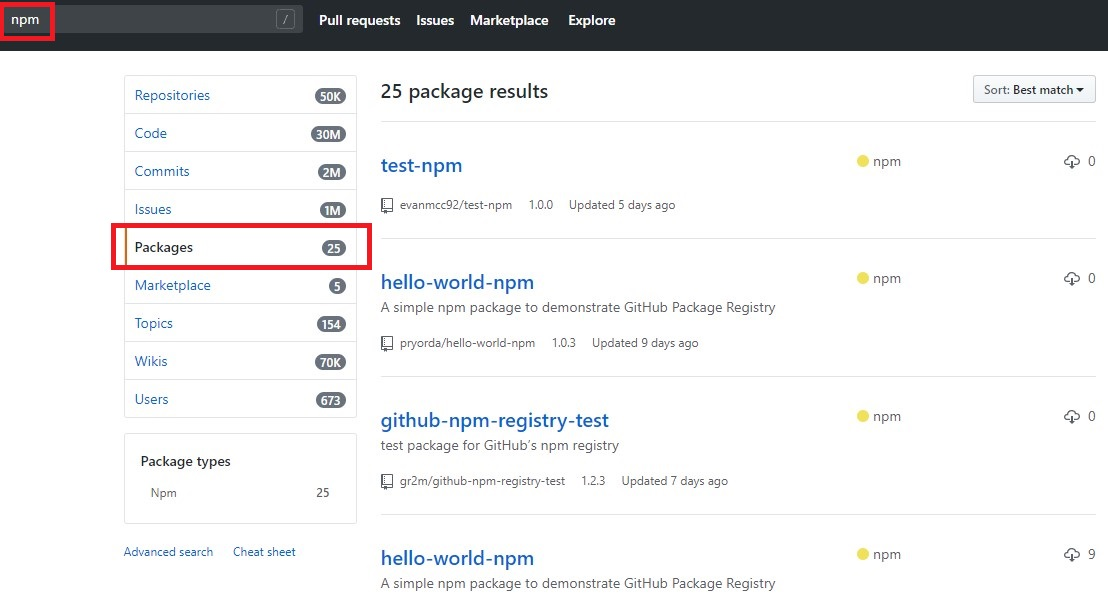 直接在GitHub搜索框中输入 包名,然后选择左侧列表中的Packages