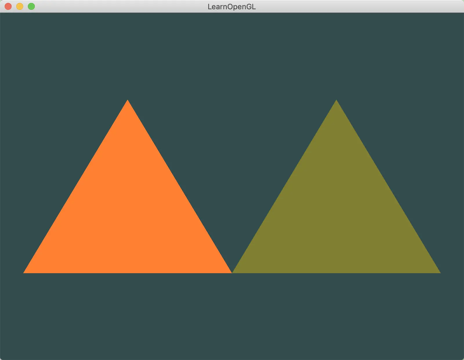 我结合学习资源写了一份简单的 OpenGL 示例程序 给你作参考,附有比较详细的渲染流程分析,需要的同学自取,这里就不占篇幅粘代码了。用 Xcode 打开程序直接 Run, 就可以看到该效果: