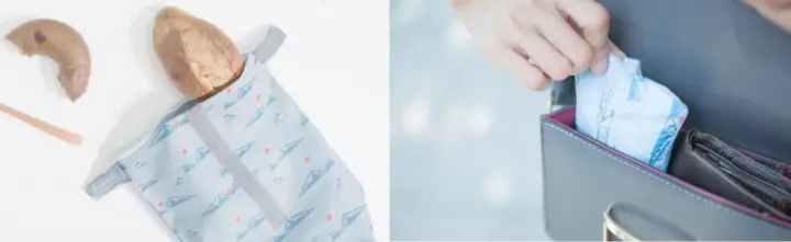 看到油管的视频的安利后购买了 Pockeat,它平时叠起来就是一包纸巾大小,内袋是食品级硅胶,可以用来打包固体和液体状的食物。目前我只试过用来打包早餐的散装面包,接下来会尝试用它打包更多食物。(为了抵消生产它的碳排放,大概得坚持使用好几年才行)
