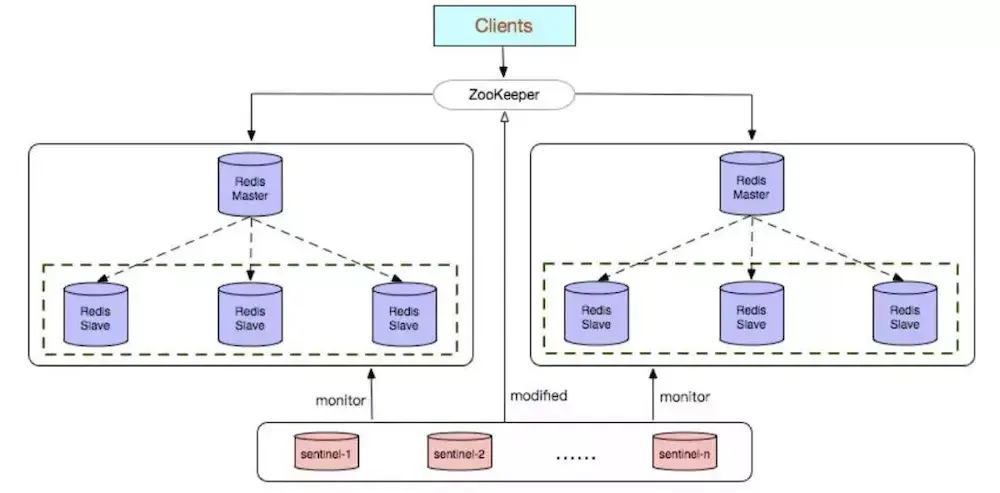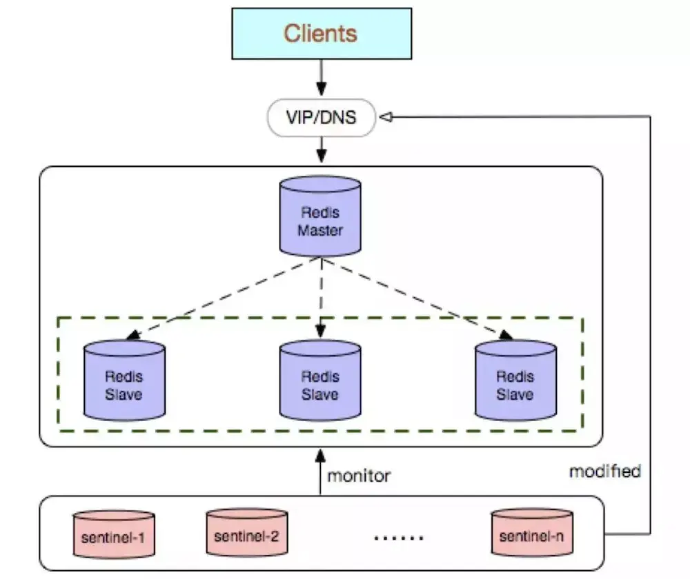 Redis Sentinel 是社区版本推出的原生高可用解决方案,其部署架构主要包括两部分:Redis Sentinel 集群和 Redis 数据集群。