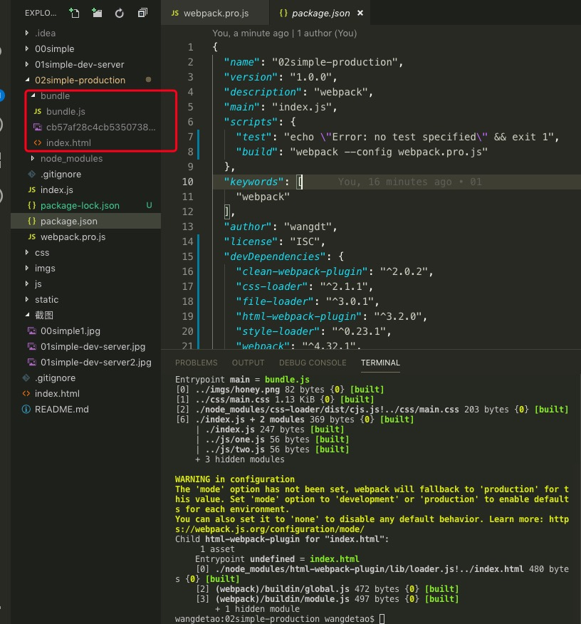 接着在terminal输入'npm run 00simple'即可,run是run-script的简写。