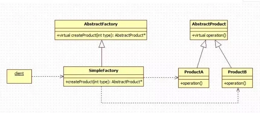 简单工厂模式是工厂模式中最简单的一种,他可以用比较简单的方式隐藏创建对象的细节,一般只需要告诉工厂类所需要的类型,工厂类就会返回需要的产品类,但客户端看到的只是产品的抽象对象,无需关心到底是返回了哪个子类。客户端唯一需要知道的具体子类就是工厂子类。除了这点,基本是达到了依赖倒转原则的要求。