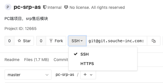 url分为https地址和ssh地址两类,在gitlab项目首页可以进行选择,如下: