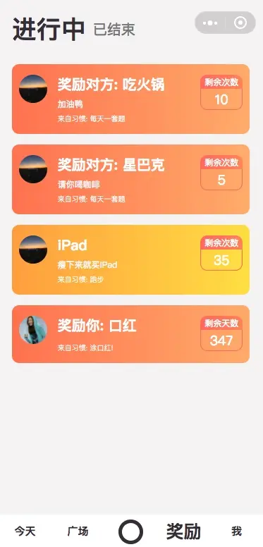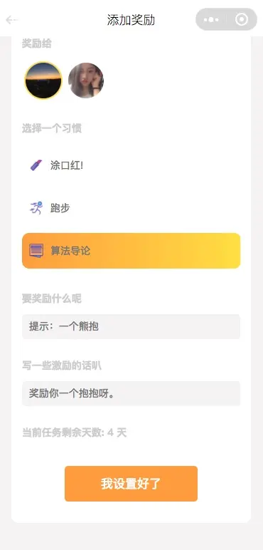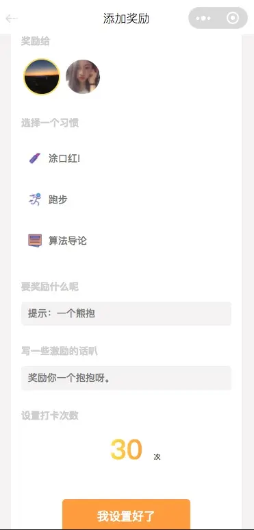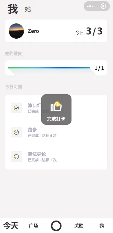另外,xxxxx Daily 虽然更侧重于两个用户完成绑定后使用,但是其中的所有功能也都可以一个人完成。你可以自己打卡,自己给自己设置奖励。