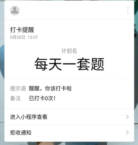 小程序卡片消息提醒