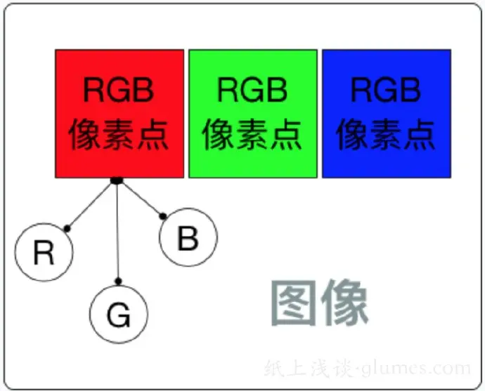 在图像显示中,一张 1280 * 720 大小的图片,就代表着它有 1280 * 720 个像素点。其中每一个像素点的颜色显示都采用 RGB 编码方法,将 RGB 分别取不同的值,就会展示不同的颜色。