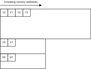 假如图像像素为:[Y0 U0 V0]、[Y1 U1 V1]、[Y2 U2 V2]、[Y3 U3 V3]