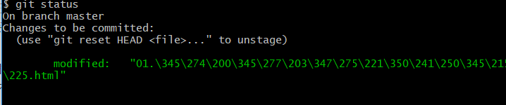 在我们完成一个功能时,可以使用命令行 git status来查看当前有哪些文件为导入暂存区或master区