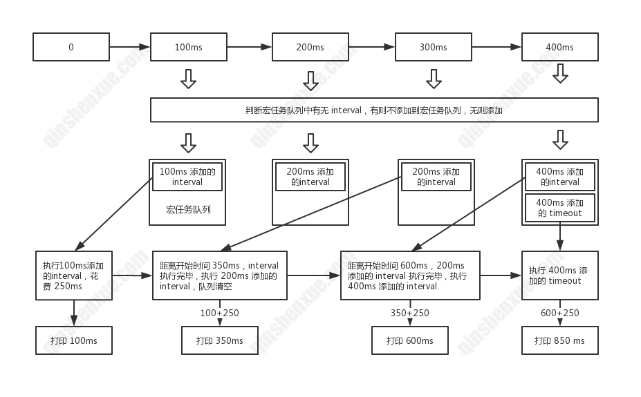 和 setTimeout 相同,调用开始计时,按 delay 时间将回调添加到宏任务队列中。那么 setInterval 是按 delay 不断的向宏任务队列添加任务,还是需要等待已添加的任务执行完后再添加,还是其他机制?