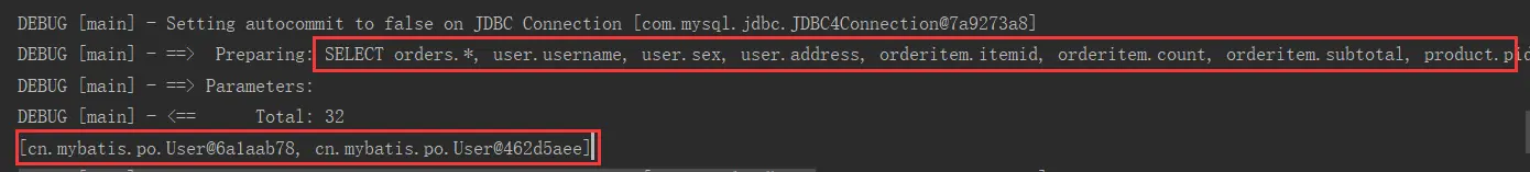 public List<User> findUsersAndProduct() throws Exception;7、最后使用Junit测试结果如下