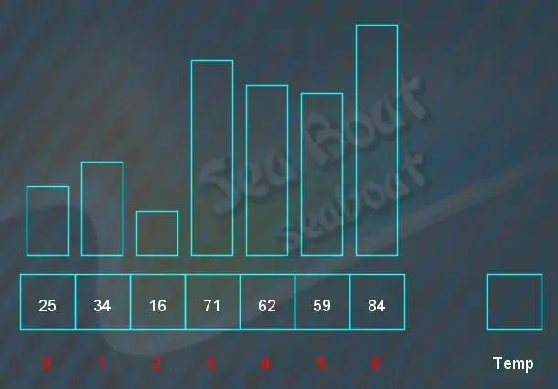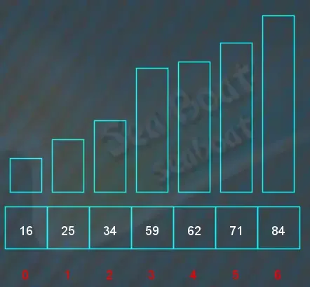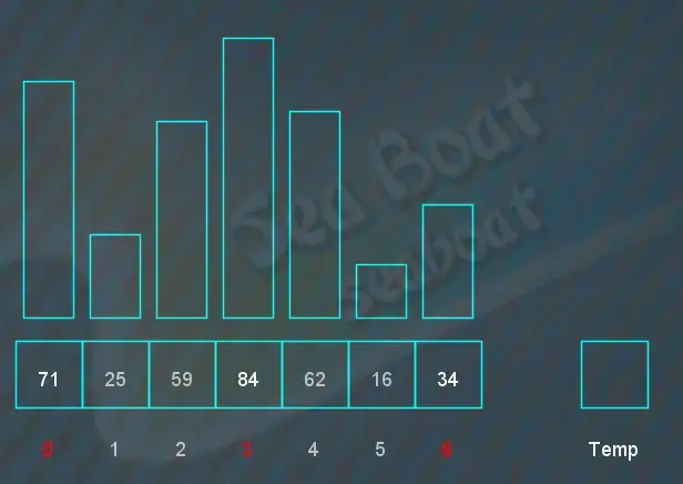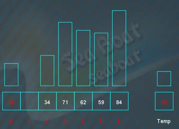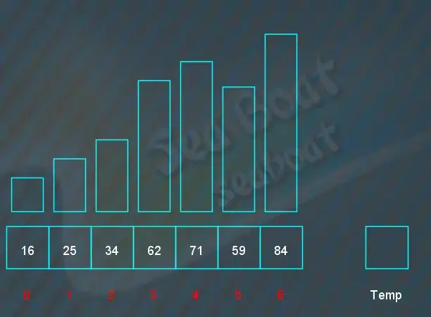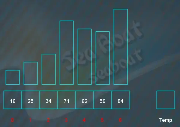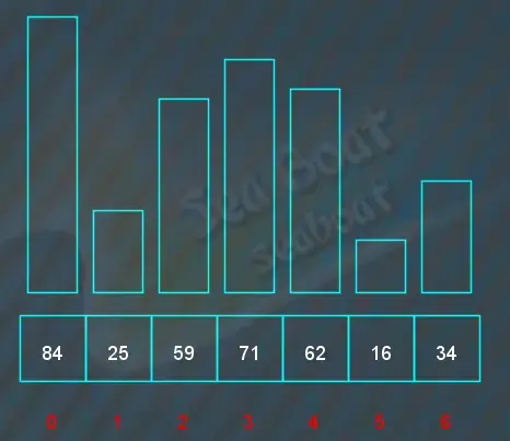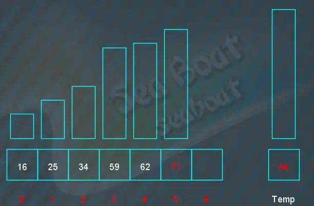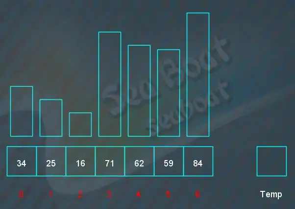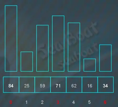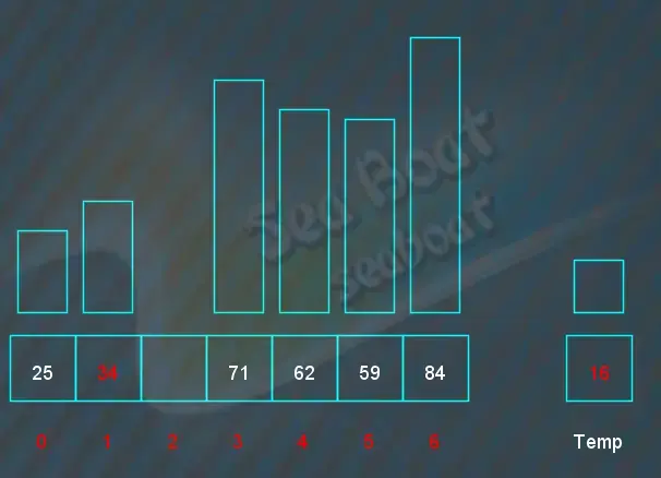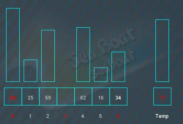 假设我们有如下7个元素,分别为84, 25, 59, 71, 62, 16, 34,现在进行希尔排序。