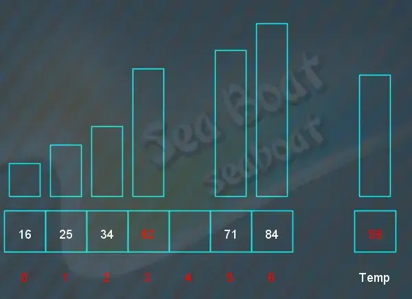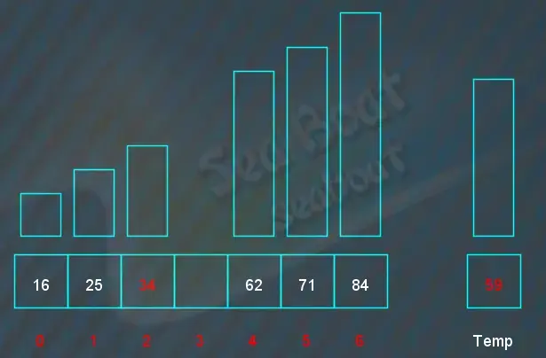 25小于62,所以不移动。然后开始处理第三组分组,第三组分组就是索引为2,5对应的元素,即59,16,对其进行插入排序操作,