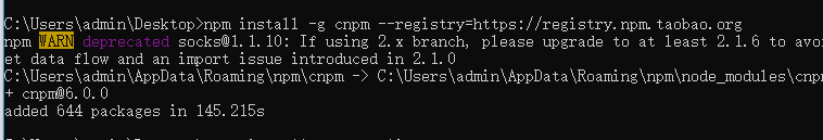 4、安装cnpm(原因:因为npm安装速度超级慢,cnpm是淘宝镜像很快,也是一个小技巧哈),(如果安装失败,建议检查一下npm版本)