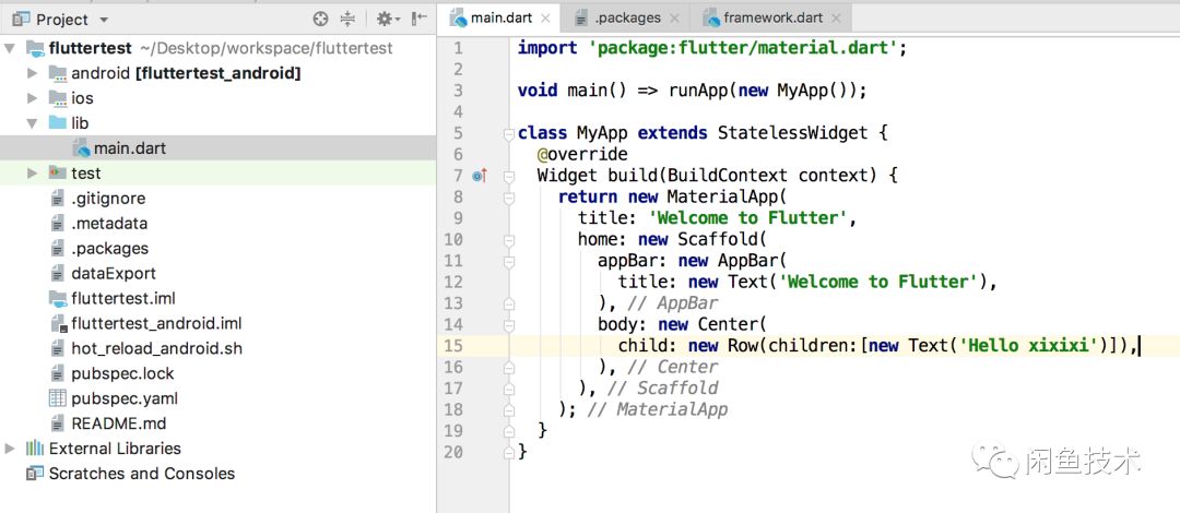 我们创建一个名为fluttertest的简单Flutter项目作为例子。