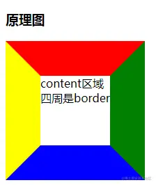 1.如下图所示,空白区域为 content 内容区,四周为 border 边框。